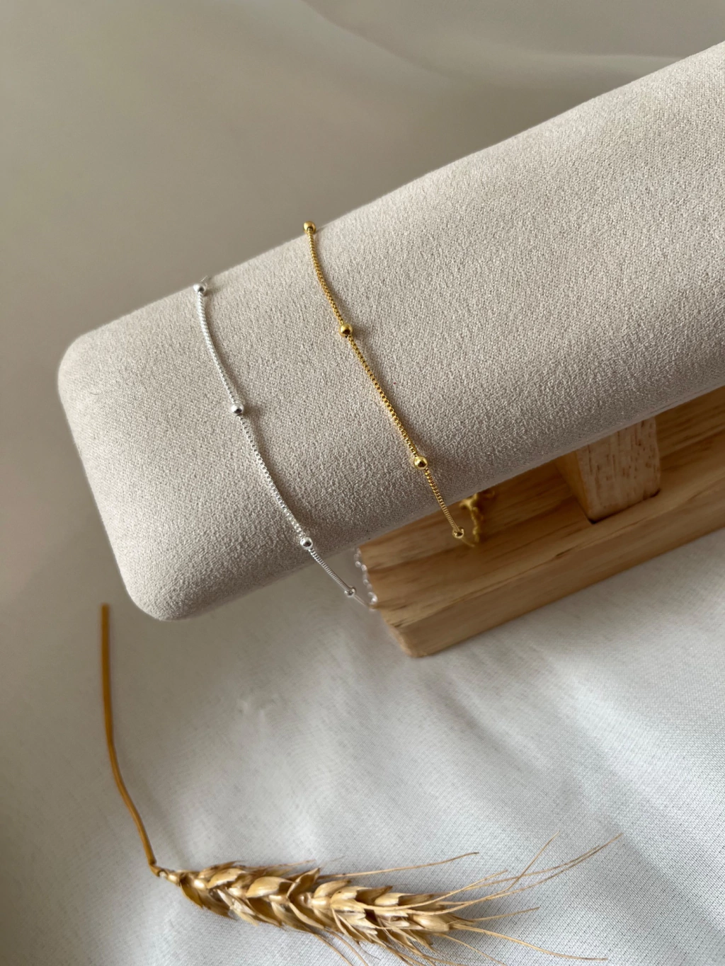 A Pulseira Bolinhas Minimalista é uma peça perfeita para composições versáteis, ideal para o dia a dia ou ocasiões especiais. Não perca a chance de adicionar um toque de sofisticação ao seu visual!